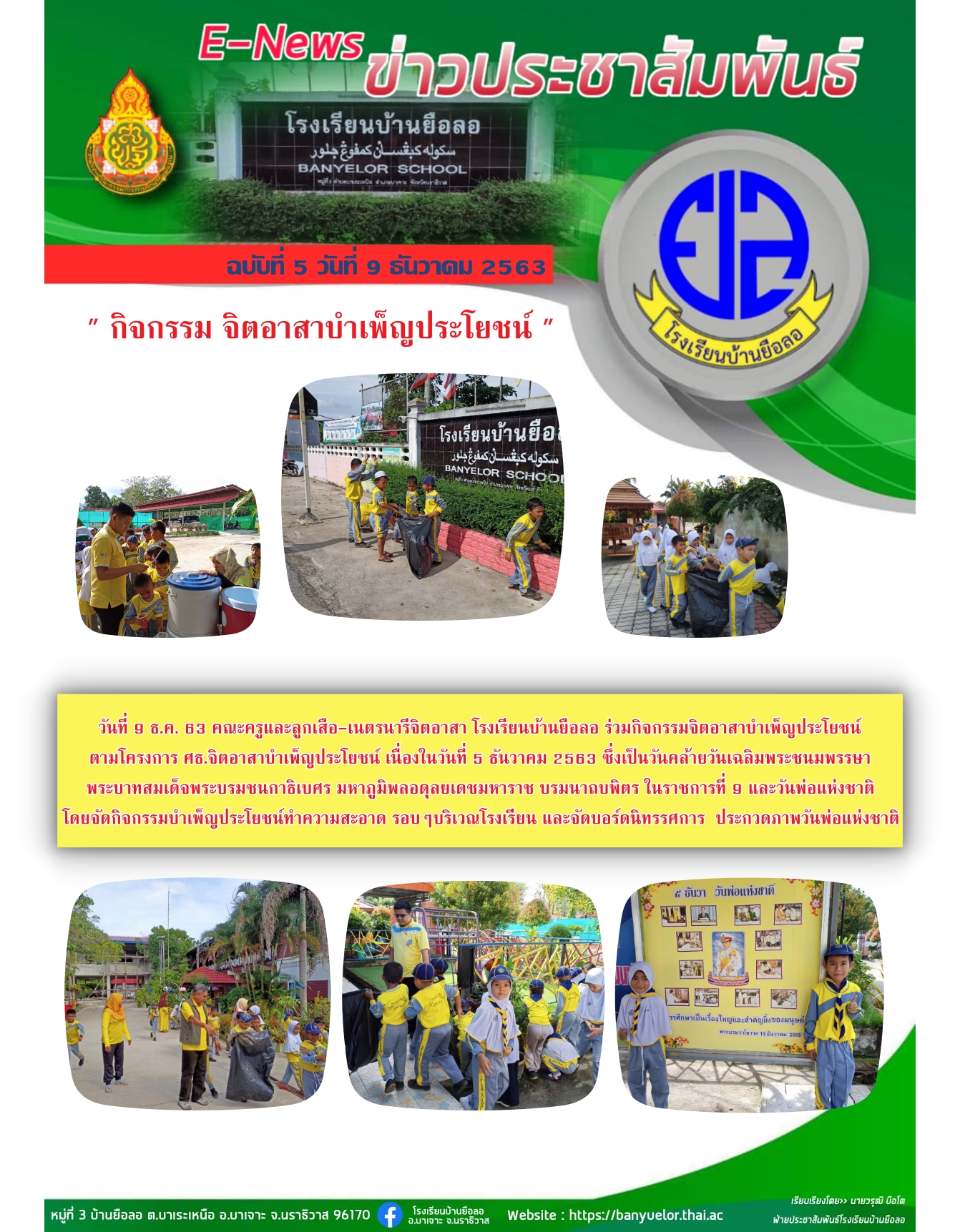 วันที่ 9 ธ.ค. 63 คณะครูและลูกเสือ-เนตรนารีจิตอาสา โรงเรียนบ้านยือลอ ร่วมกิจกรรมจิตอาสาบำเพ็ญประโยชน์