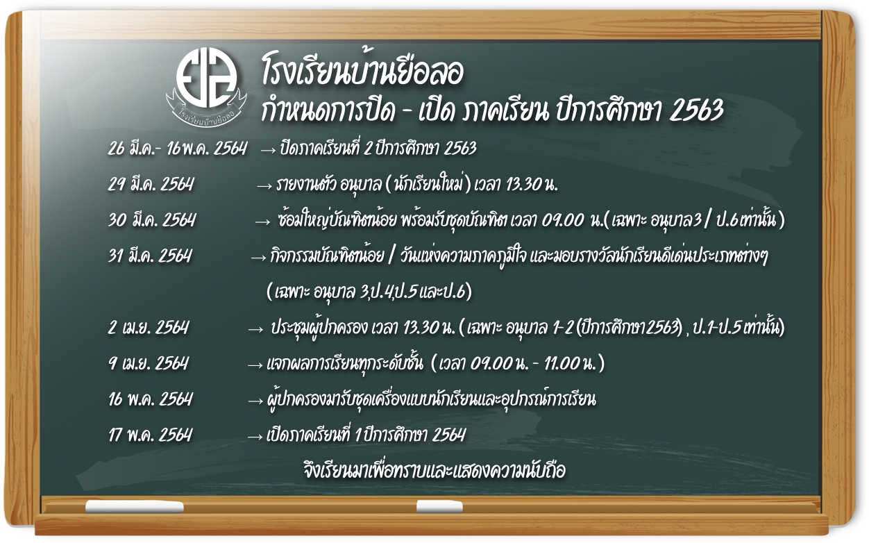 กำหนดการ ปีการศึกษา 2563