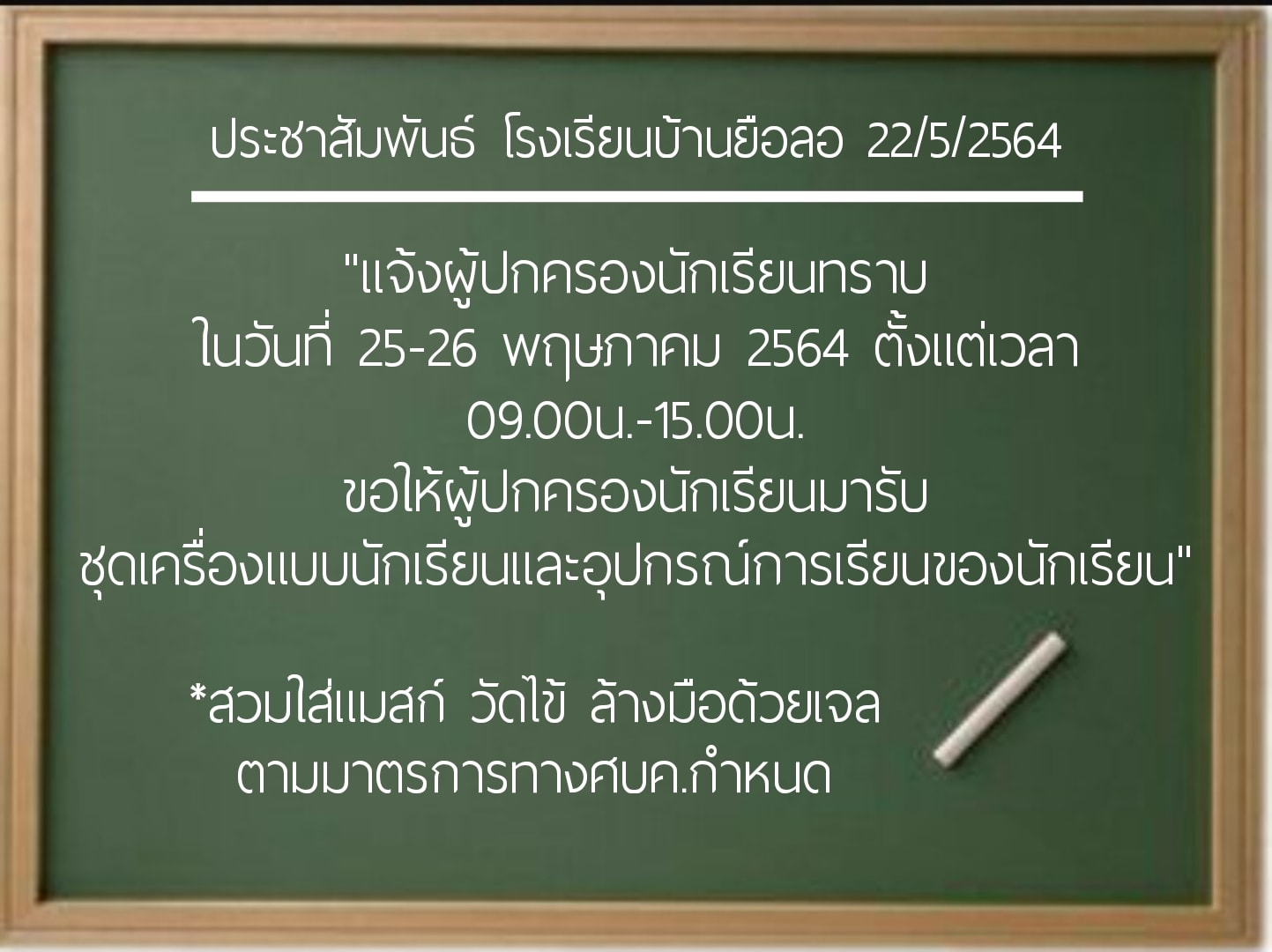 ขอให้ผู้ปกครองนักเรียน (เฉพาะผู้ปกครอง) มารับชุดเครื่องแบบนักเรียนและอุปกรณ์การเรียนของนักเรียน"