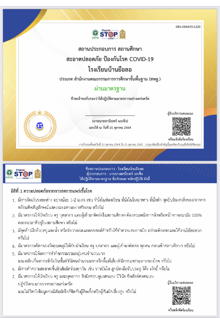7 มีมาตรการให้นักเรียน ครู และบุคลากร รับผิดชอบดูแลตนเองมีวินัยซื่อสัตย์ต่อตนเองปฏิบัติตามมาตรการอย่างเคร่งครัดและไม่ปิดบังข้อมูลกรณีสัมผัสใกล้ชิดกับผู้ติดเชื้อหรือผู้สัมผัสเสี่ยงสูง หรือไม่